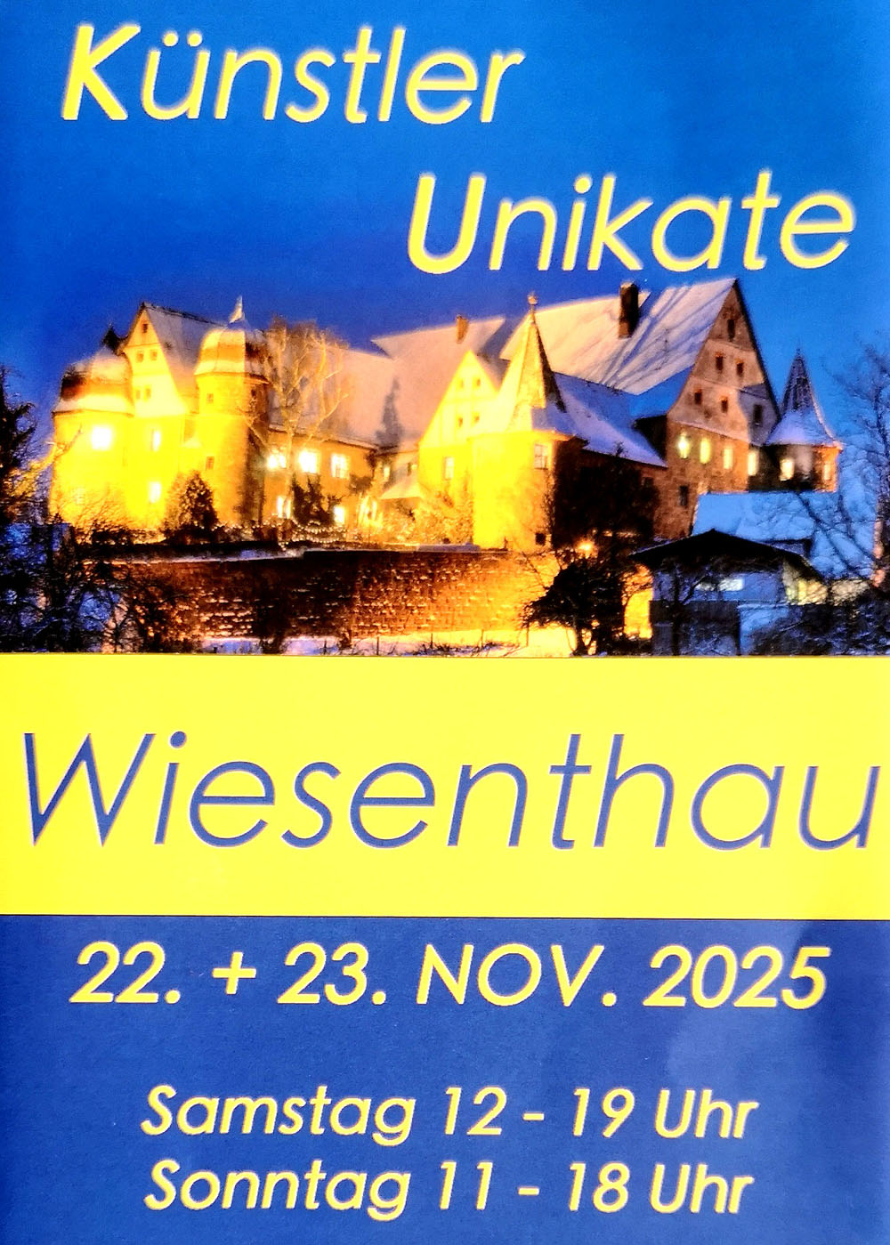 Auch in diesem Jahr nehme ich mit meinen Arbeiten an der Ausstellung "Künstler Unikate" auf Schloss Wiesenthau teil.